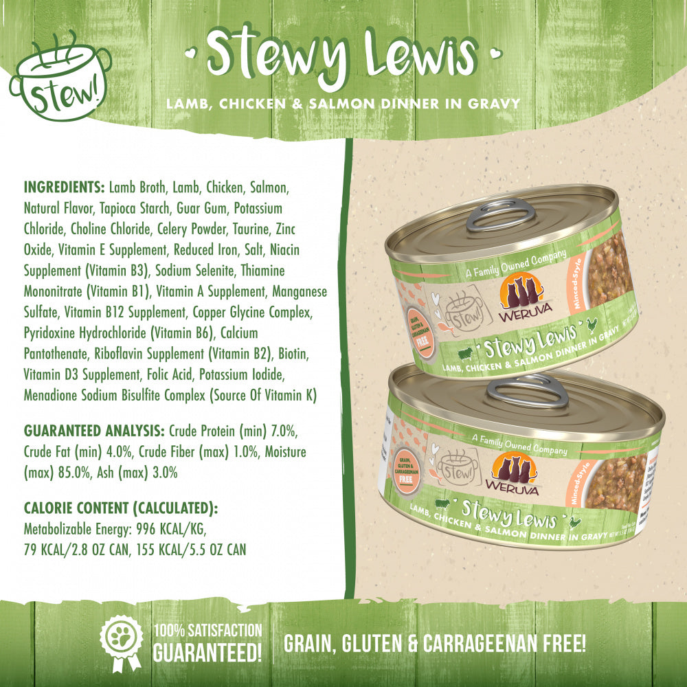 Weruva Classic Cat Stews! Stewy Lewis with Lamb Chicken & Salmon in Gravy Canned Cat Food