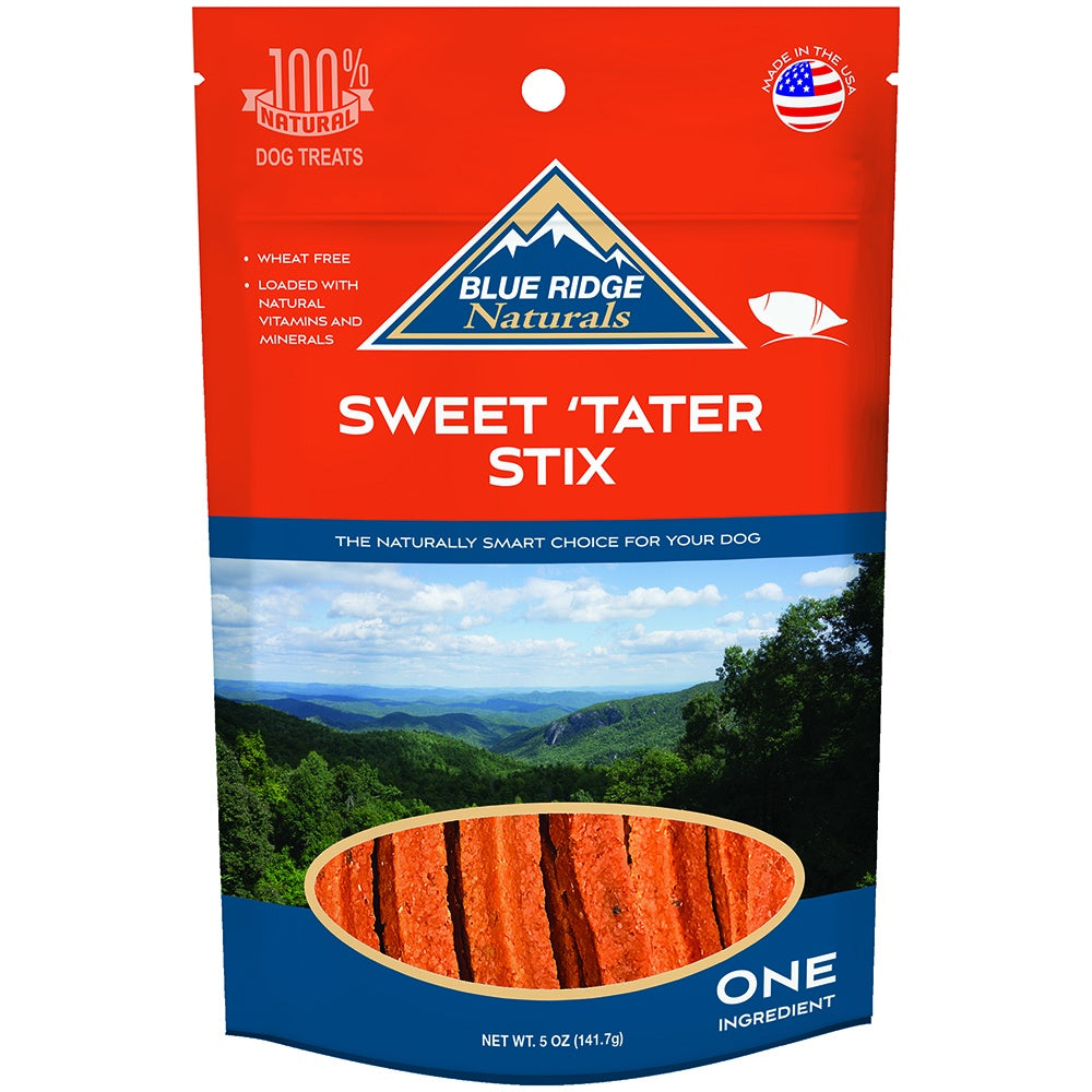 We know your dog will find our Blue Ridge Naturals Sweet ‘Tater Jerky Stix to be one of their all-time favorites! Made with wholesome sweet potatoes these treats are good for your dog, too. The sweet potato provides the highest percentage of Vitamins A and C, folate, iron, copper, and calcium of any vegetable, along with other essential nutrients.