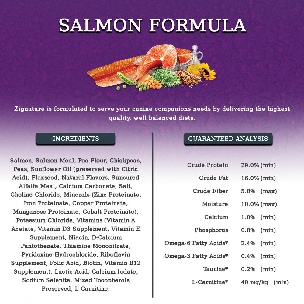 Salmon, Salmon Meal, Pea Flour, Chickpeas, Peas, Sunflower Oil (Preserved With Mixed Tocopherols And Citric Acid), Flaxseed, Natural Flavors, Suncured Alfalfa Meal, Calcium Carbonate, Salt, Choline Chloride, Minerals (Zinc Proteinate, Iron Proteinate, Copper Proteinate, Manganese Proteinate, Cobalt Proteinate), Potassium Chloride, Vitamins (Vitamin A Acetate, Vitamin D3Supplement, Vitamin E Supplement, Niacin, D-Calcium Pantothenate, Thiamine Mononitrate, Pyridoxine Hydrochloride, Riboflavin Supplement, Folic Acid, Biotin, Vitamin B12 Lactic Supplement), Lactic Acid, Calcium Iodate, Sodium SeleniteGuaranteed Analysis